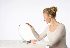 имитация солнечного света для борьбы с недомоганиями, вызванными недостатком солнечного света в зимние месяцы, такими как неуравновешенность, подавленное настроение, повышенная утомляемость и вялость,