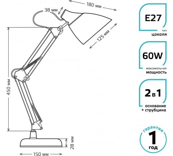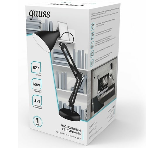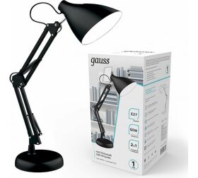 Настольный светильник Gauss модель GTL003 60W 220-240V E27 черный струбцина и основание 1/12 GT0032 с классической формой и цоколем E27 отлично подойдет для освещения рабочей зоны. Рекомендуется использовать светильник со светодиодными лампами Gauss с цоколем E27.