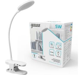 Настольная лампа от Gauss на прищепке оснащена встроенным аккумулятором. Аккумулятор Li-ion имеет большой запас емкости и легкий вес.