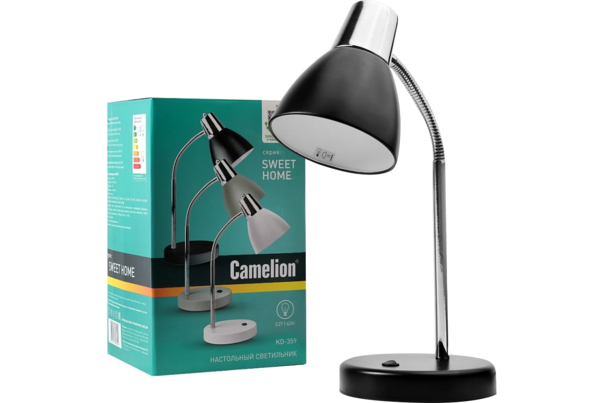 Настольный светильник Camelion предназначен для домашнего освещения. Его можно использовать с любыми типами ламп, в том числе со светодиодными.
