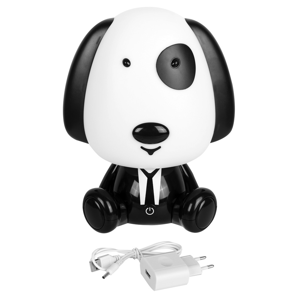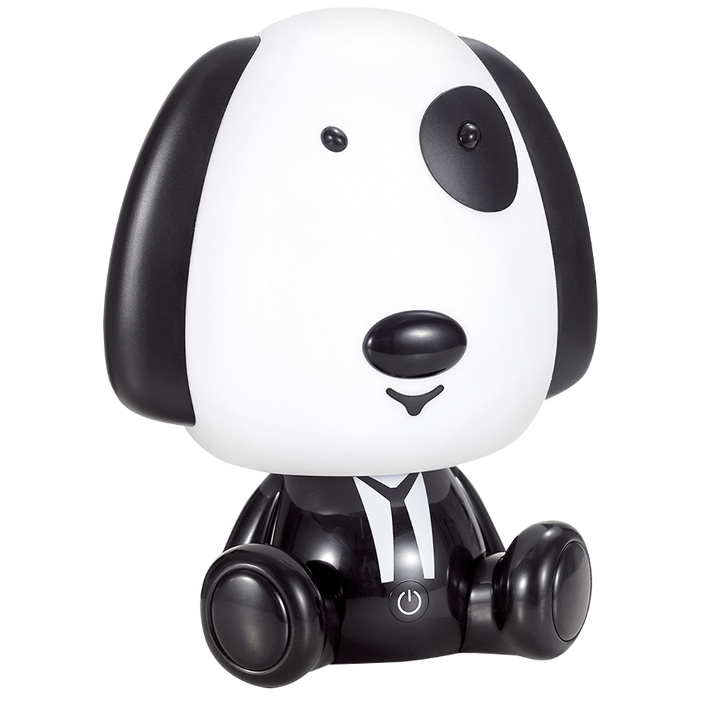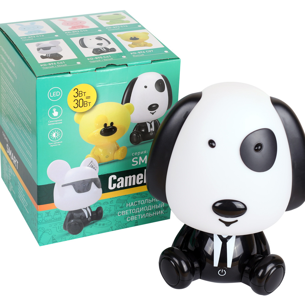 Декоративный светодиодный настольный светильник Camelion KD-895 предназначен для местной подсветки и украшения интерьера комнаты ребенка / подростка, может использоваться в качестве ночника. Используется во внутренних сухих помещениях ( степень защиты - IP 20). Корпус светильника изготовлен в виде забавной собаки в черном костюме , голова которой является плафоном. Сенсорная кнопка включения /выключения / регулировки яркости находится на передней части основания.