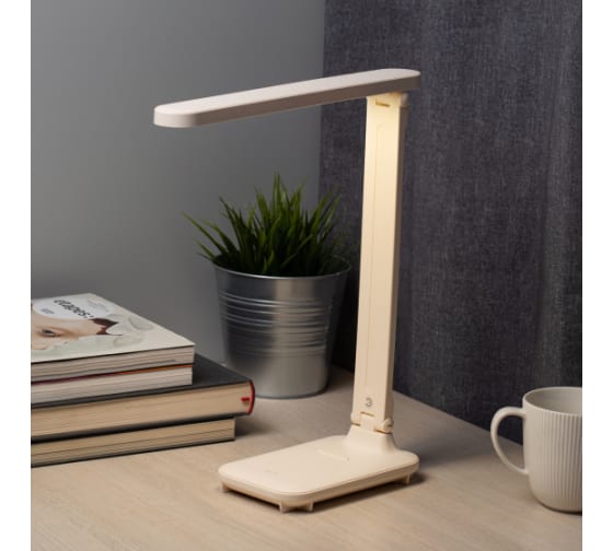 Настольный светильник ЭРА NLED-495-5W-BG со светодиодами (LED) в качестве источников света в дизайне "под кожу". Встроенный литиевый аккумулятор для автономной работы. Подзарядка от USB. USB-кабель в комплекте. Оснащен сенсорным управлением с возможностью выбора цветовой температуры (теплый, нейтральный или холодный свет). Плавный диммер для регулировки яркости. Выключатель для отключения/блокировки сенсора. Направление света регулируется наклоном стойки и поворотом панели со светодиодами относительно стойки для максимального комфорта. Складная конструкция для оптимального хранения.
