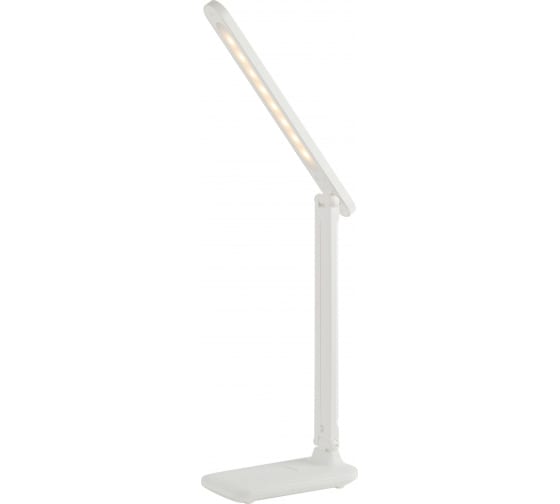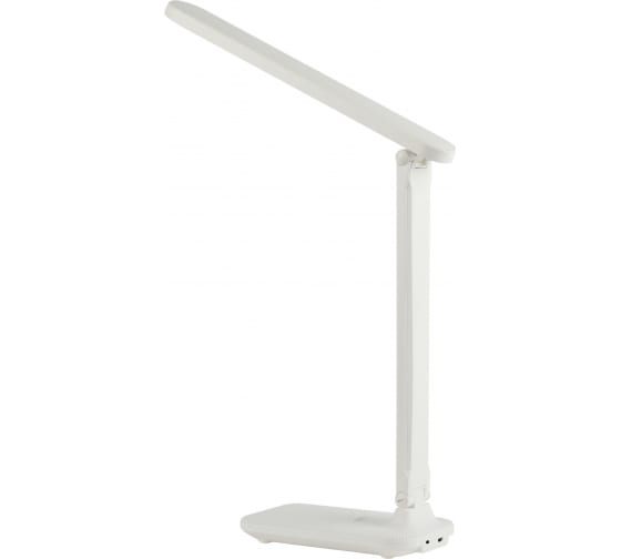 Настольный светодиодный светильник ЭРА NLED-495-5W-W аккумуляторный, складной, белый Б0051472 со светодиодами (LED) в качестве источников света в дизайне под кожу. Встроенный литиевый аккумулятор для автономной работы. Подзарядка от USB. USB-кабель в комплекте.