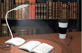 Лампа освещения настольная, светодиодная с выбором цвета освещения от тёплого белого до холодного белого света, с плавной регулировкой яркости, удобной сенсорной кнопкой, на «гибкой ноге» с изменяемым углом наклона и поворота светильника.