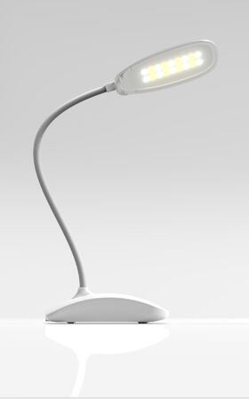 "Гибкая нога" лампы свободно регулируется по углу наклона и поворота светильника. Устойчивое нескользящее основание позволяет расположить лампу на любой горизонтальной поверхности: столе, полке, тумбочке, подоконнике и т.д.