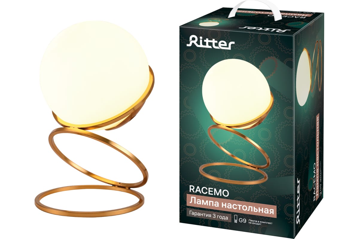 Декоративный настольный светильник серии RACEMO выполнит роль оригинального декора в спальне, гостиной, на кухне, в детской или прихожей. Он удачно впишется в стили минимализм, неоклассика, ар-деко, модерн и другие. Настольная лампа используется для локальной подсветки зон и расстановки акцентов в интерьере. Для подключения светильника Вам понадобится 1 лампочка с цоколем G9. Максимально допустимая мощность для ламп накаливания 40 Вт. Лампочка в компект не входит.