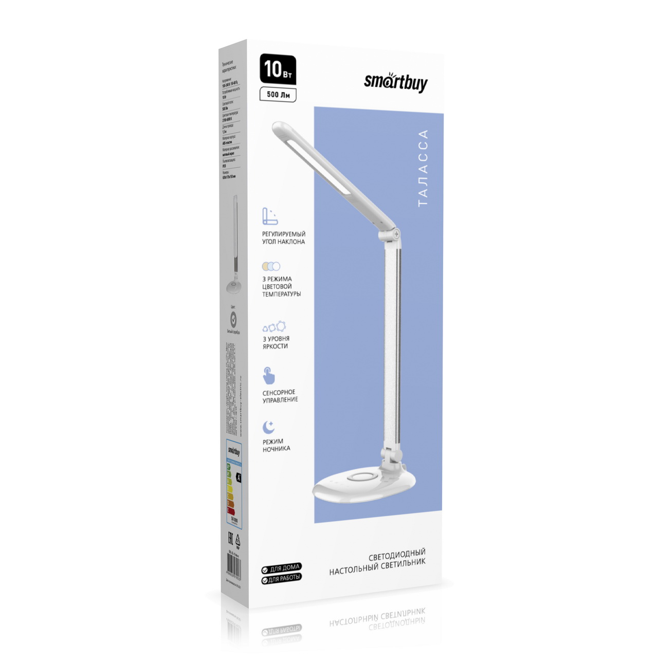 Светодиодный настольный светильник Таласса, 10 Вт, серебро (LED), Smartbuy имеет три уровня яркости и три режима цветовой температуры. Режим ночника.