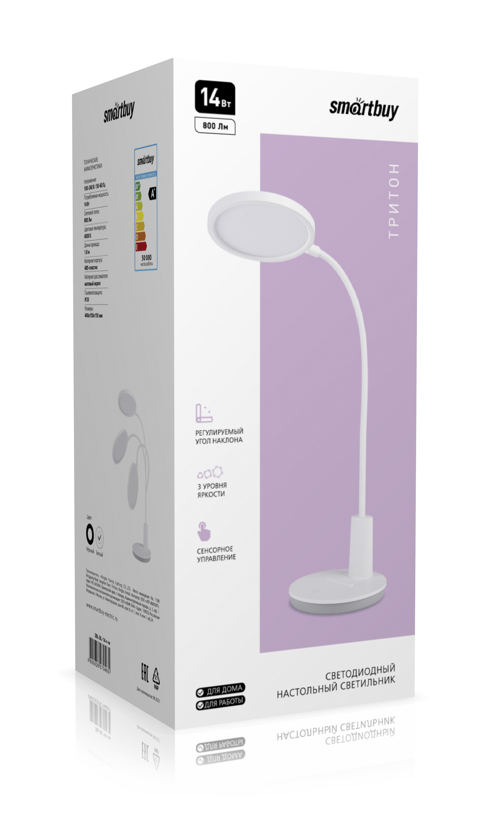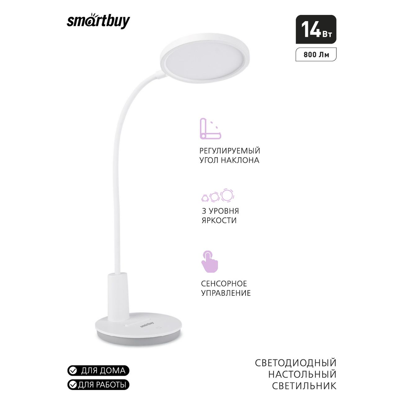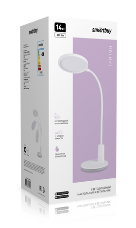 Светодиодный настольный светильник Тритон, 14 Вт, белый (LED), Smartbuy имеет три уровня яркости. Длина кабеля 1,8 м.