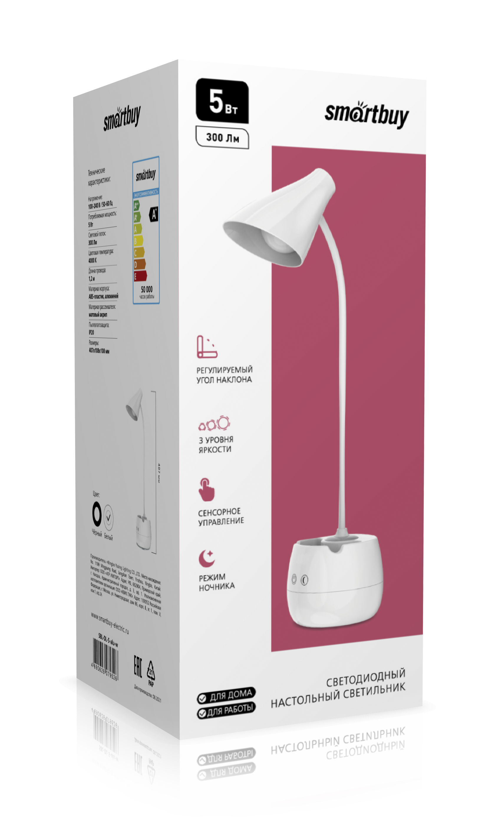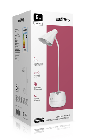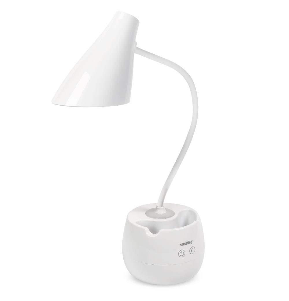 Светодиодный настольный светильник Smartbuy, 5 Вт, белый SBL-DL-5-alu-w имеет три уровня яркости. Режим ночника. Длина кабеля 1,2 м.