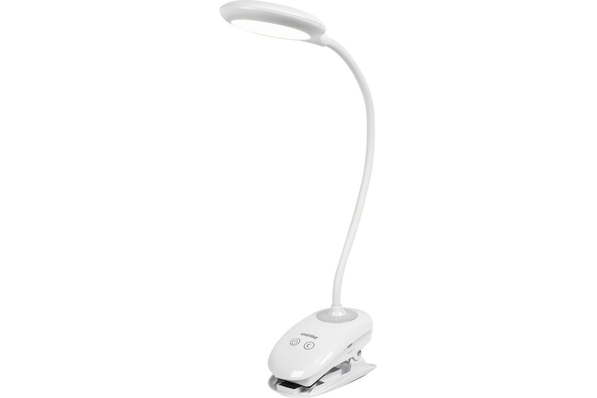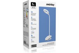 Светодиодный настольный светильник Smartbuy с прищепкой, 5 Вт, белый SBL-DL-5-cl-w имеет три уровня яркости. Световой поток: 300 Лм. Цветовая температура основного света: 4000К. Встроенный аккумулятор: Li-ion 1200мАч. Длина провода: 1,2 м, без адаптера.