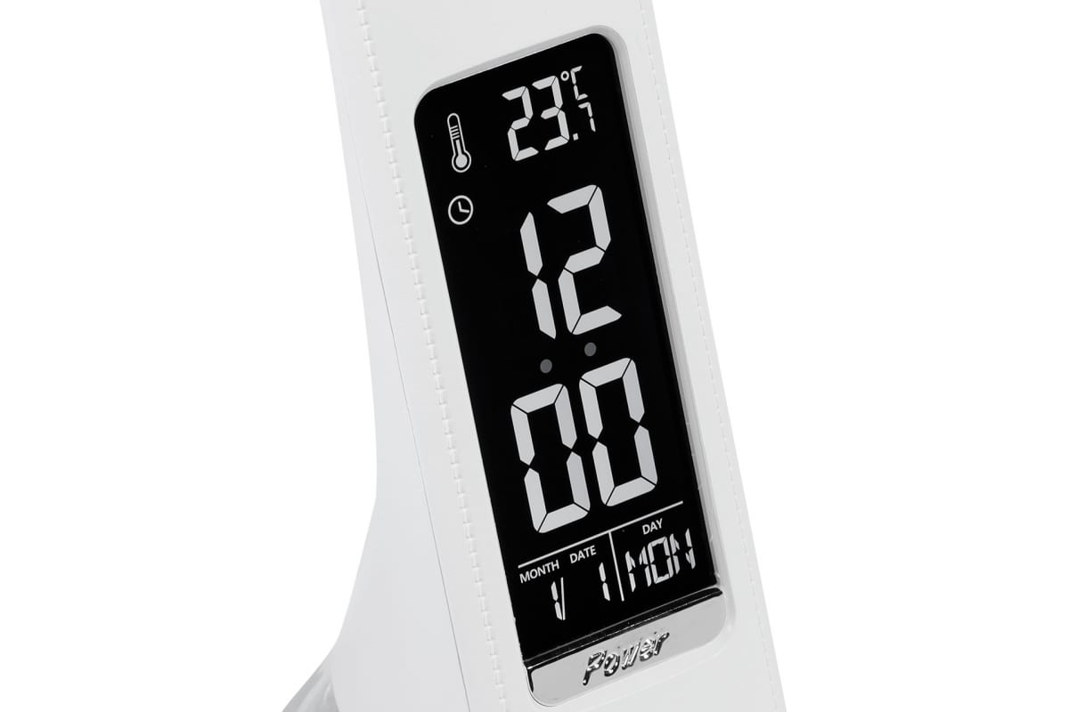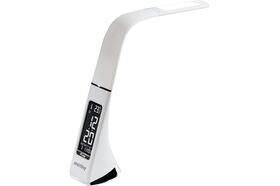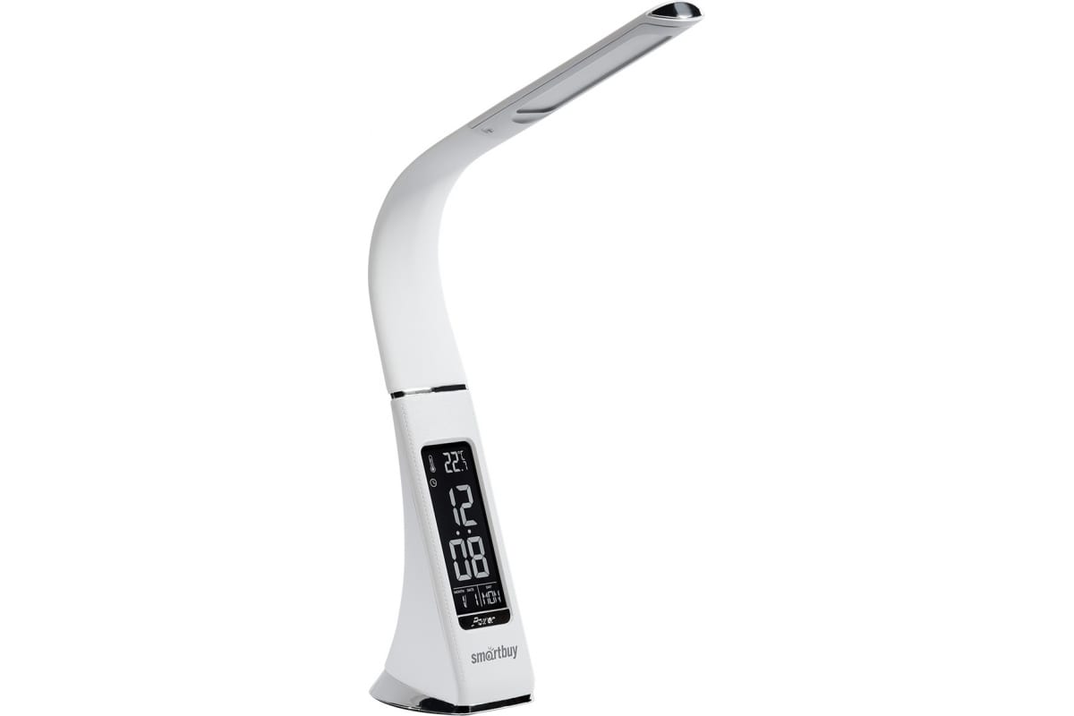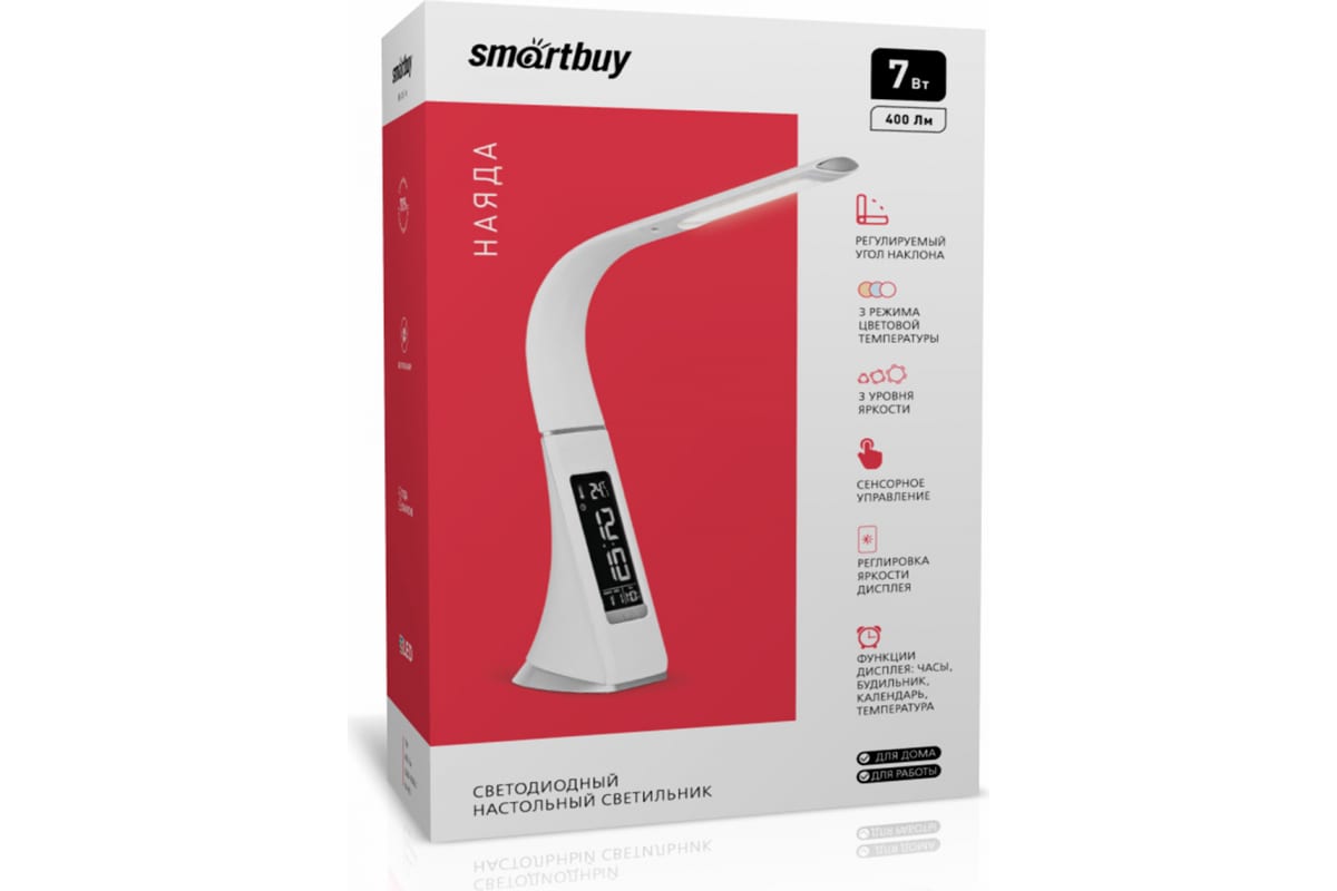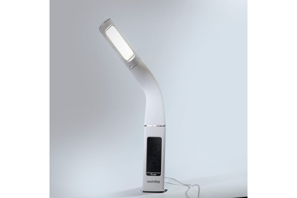 Светодиодный настольный светильник Smartbuy Наяда, 7 Вт, белый SBL-DL-7-w подключается к стандартной электросети с напряжением 220 В. Имеет три уровня яркости, три режима цветовой температуры. Цветовая температура основного света: 3000-6500К.Световой поток: 400 Лм. Функции дисплея: часы, будильник, календарь, температура. Длина провода 1,5 м.