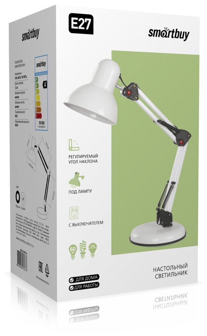 Технические характеристики Smartbuy под лампу E27 на основании, белый SBL-DL-E27-w