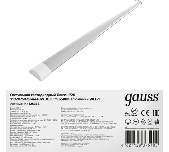 Технические характеристики Gauss LED 36W 6500K 1209*75*25 мм IP20 144125336