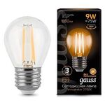 Лампочка Gauss 105802109 Filament Шар E27 9Вт 220B 2700K св.свеч.бел.теп. G45 (10шт)
