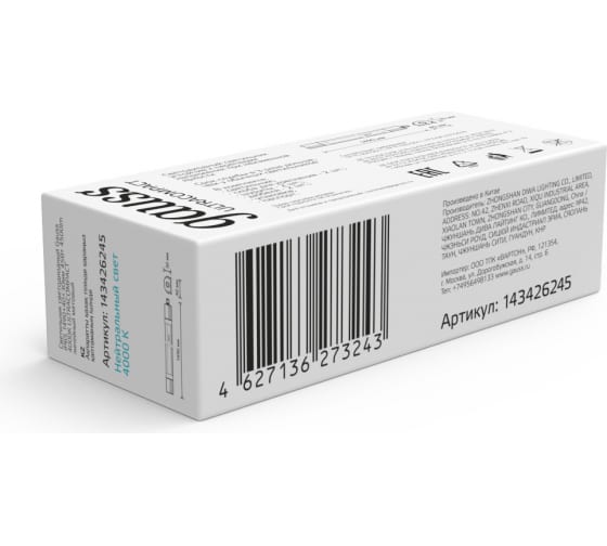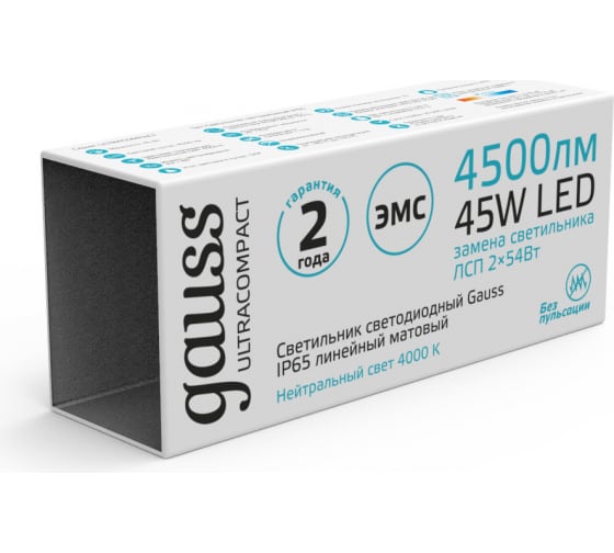 Технические характеристики Gauss ULTRACOMPACT IP65 1490x40x30мм 45Вт 3550lm 4000К матовый 143426245