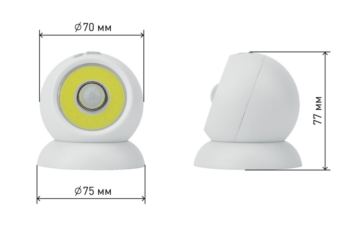 Оснащен датчиками освещенности и движения - автоматически включается и выключается, когда подсветка требуется или не требуется (для перехода в режим бесконтактного включения/выключения необходимо удерживать кнопку в течение 5-8 секунд до мигания). Позволяет выбирать нужное направление света, вращая устройство под любым углом. Фонарь легко взять с собой, а после использования вновь разместить на стационарном магнитном основании.