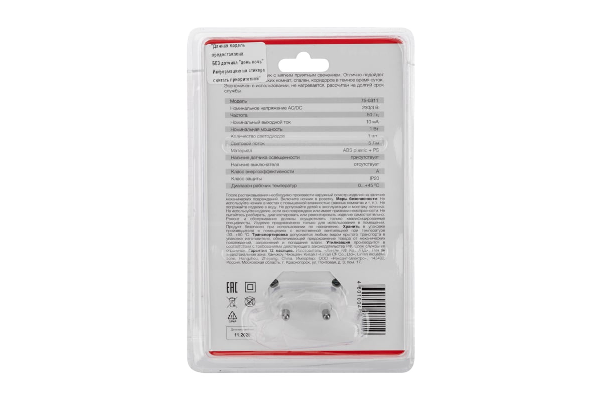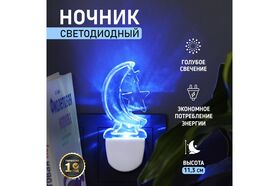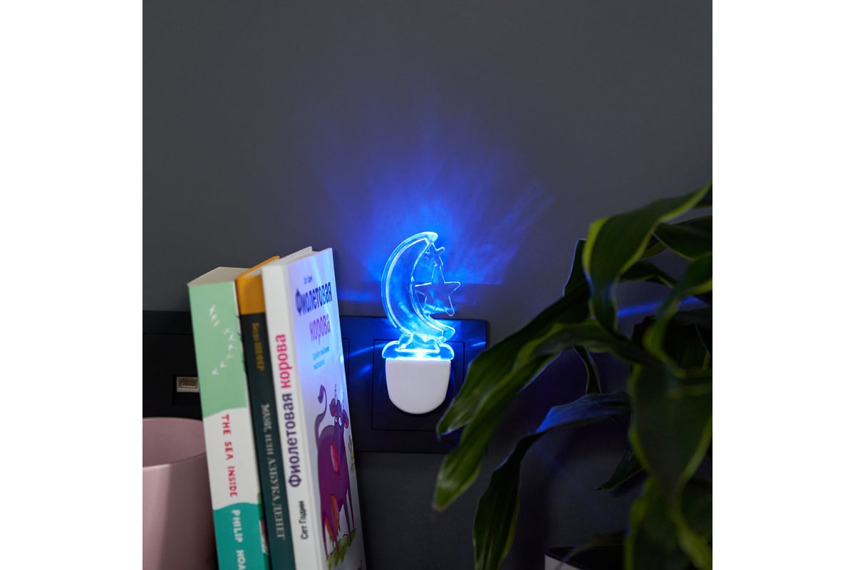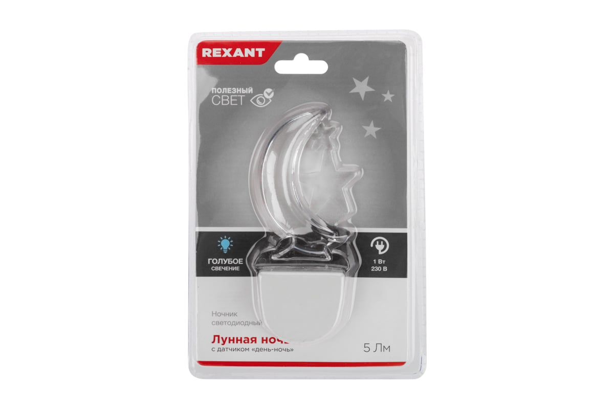 Светодиодный ночник REXANT ЛУННАЯ НОЧЬ голубое свечение 75-0311 предназначен для освещения бытовых помещений, коридоров, спален и санузлов в темное время суток.