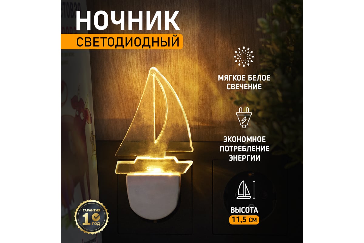Светодиодный ночник REXANT ПАРУС ОДИНОКИЙ белое свечение 75-0312 предназначен для освещения бытовых помещений, коридоров, спален и санузлов в темное время суток.