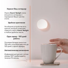 Особенности, дополнительно ИК-сенсор, теплое белое свечение, крепление-магнит, 2 режима работы, автоматическое включение при срабатывании сенсора, крепление-крючок