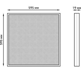 Технические характеристики Gauss 595x595x19мм 45W 4100lm 4000K призм. рассеиватель 842123245