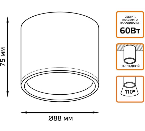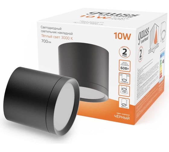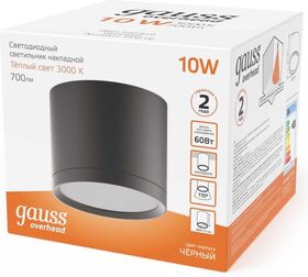 Технические характеристики Gauss с рассеивателем LED 10W черный 3000K 88х75, 700лм HD016