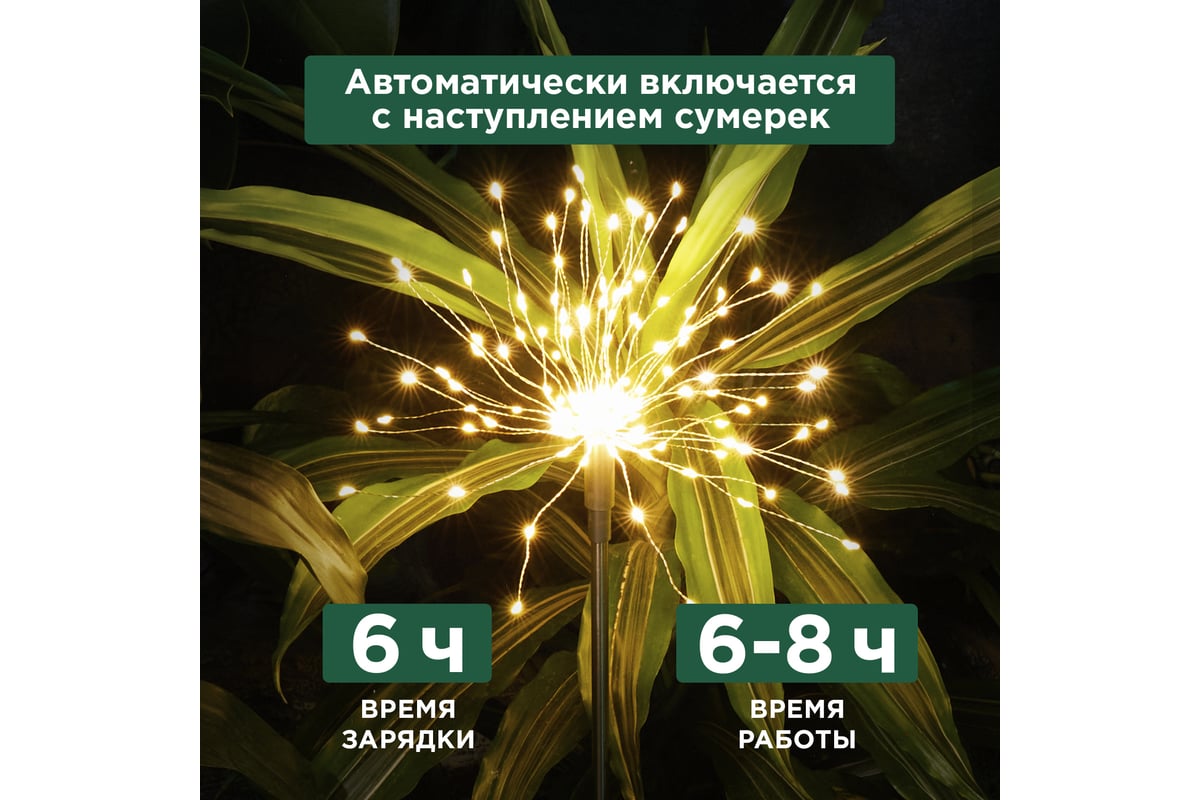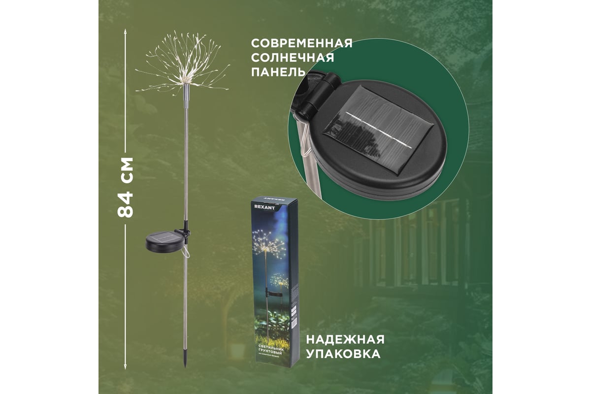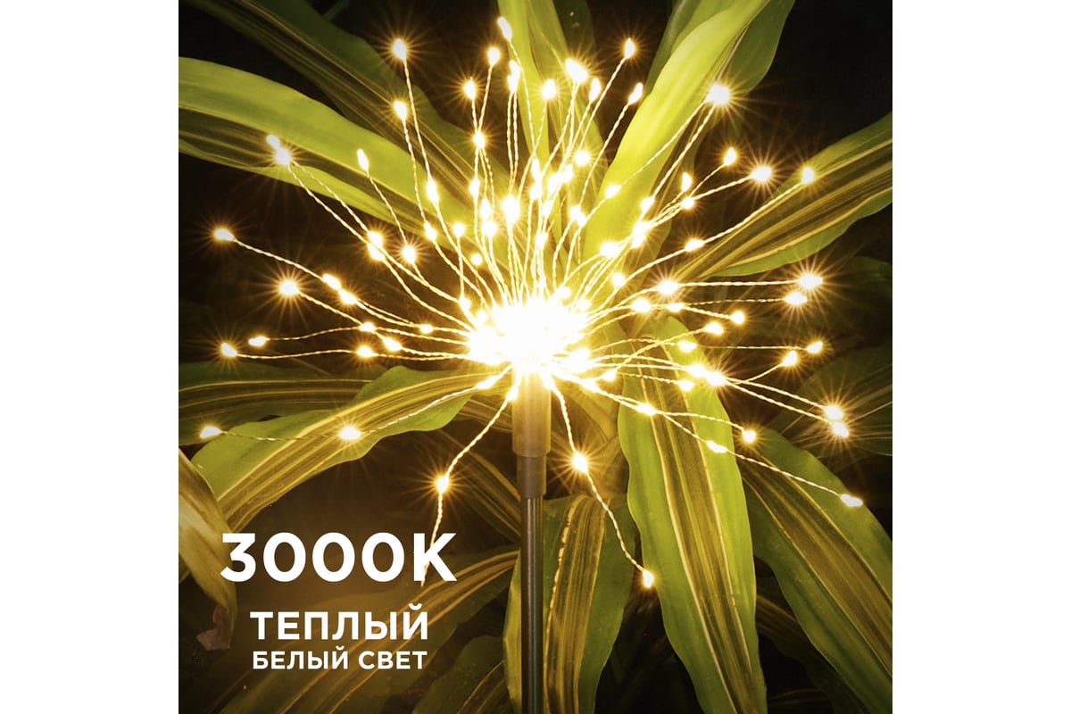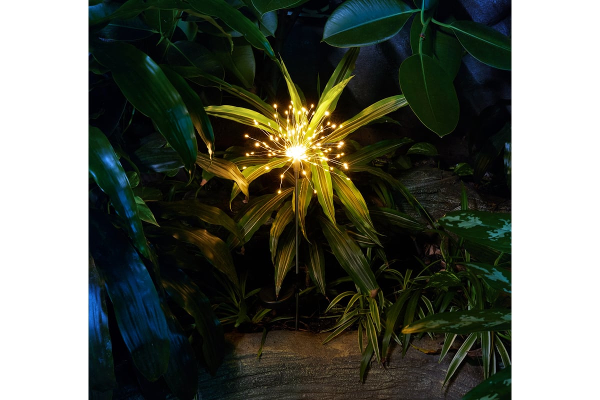 Дизайн светильника вдохновлен атмосферой праздничных салютов, когда небо озаряется множеством красочных огоньков. Изделие создаст не только функциональное освещение в вашем саду, но также будет радовать глаз и дарить волшебное настроение.