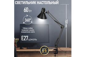 Настольная лампа REXANT Акцент на струбцине Е27 черная 603-1008 используется для освещения рабочего места, места чтения или учебы. Благодаря лаконичному дизайну и мягкому приятному свечению светильник создаст неповторимый уют как в офисе, так и дома. Корпус выполнен из высококачественного металла. Встроенный механический выключатель.