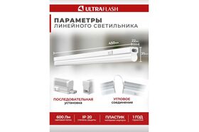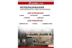 Светильник Ultraflash LED c выключателем на корпусе LWL-2016-02 LED 13945 имеет возможность соединения в линию с аналогичными моделями светильников. Потребляет минимум электроэнергии без ущерба мощности благодаря источнику свечения в виде светодиодов.