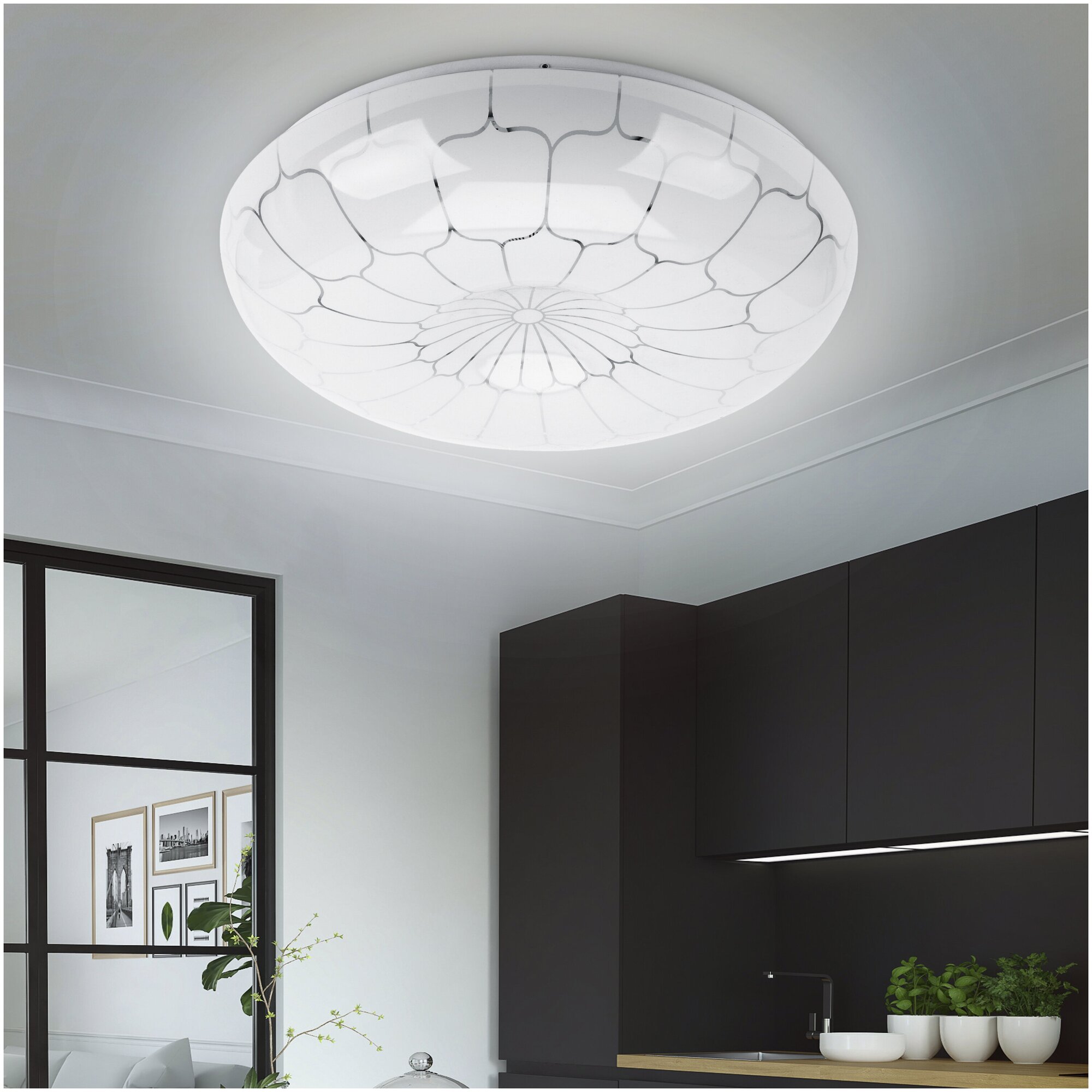 Неповторимый минималистичный корпус плафона освежит интерьер спальни, прихожей или гостиной. Слегка выпуклая форма придает модели динамики.