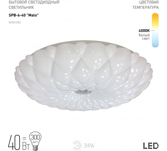 Технические характеристики ЭРА Классик SPB640 Malo без ДУ 40Вт 4000К 2700Лм Б0051083