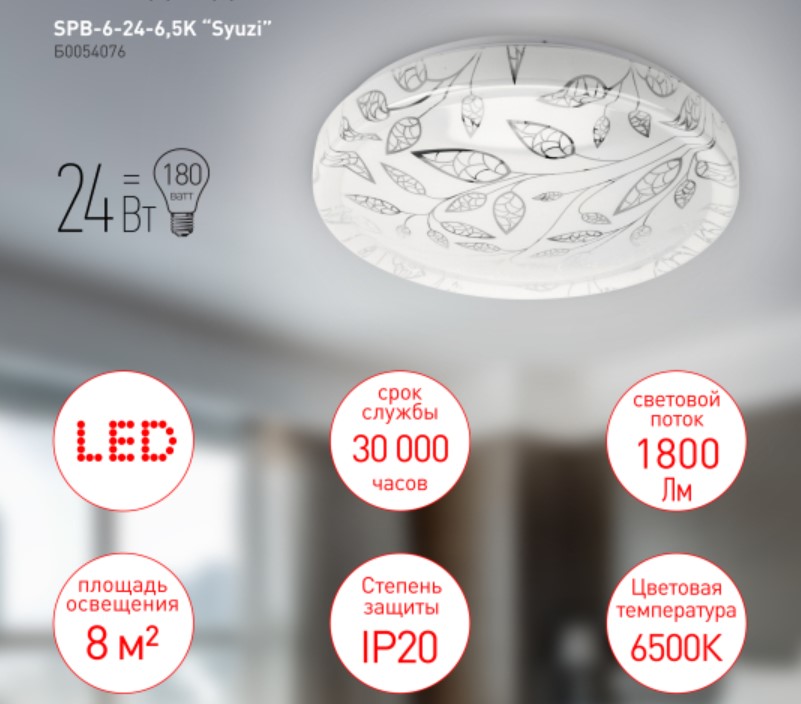 Технические характеристики ЭРА SPB-6-24-6,5K Syuzi 24Вт 6500K Б0054076