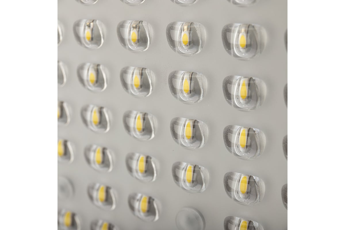 Множество долговечных светодиодов с мягким белым свечением создают эффект дневного освещения. Прочный рассеиватель из поликарбоната со встроенной оптикой используется в качестве рассеивателя.