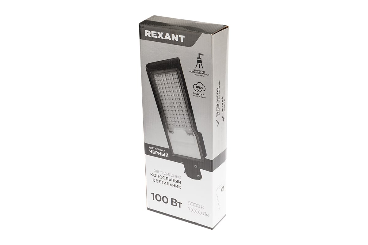 Светодиодный консольный светильник REXANT ДКУ 02-100-5000К-Ш асимметричный IP65 607-303 – энергоэффективная замена традиционным газоразрядным светильникам ЖКУ, РКУ и прочих. Предназначен для освещения дорог со средней и низкой интенсивностью движения, парков, придворовых территорий, детских площадок, автостоянок, площадей, железнодорожных платформ, велодорожек и прочих объектов.