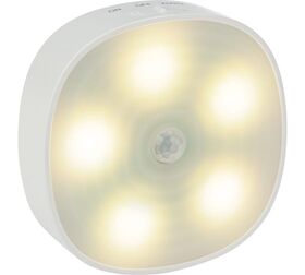 Светильник работает от 3 батареек типа ААА и имеет кнопку включения на корпусе. Светильник оснащен датчиком движения и может быть закреплен на стену.