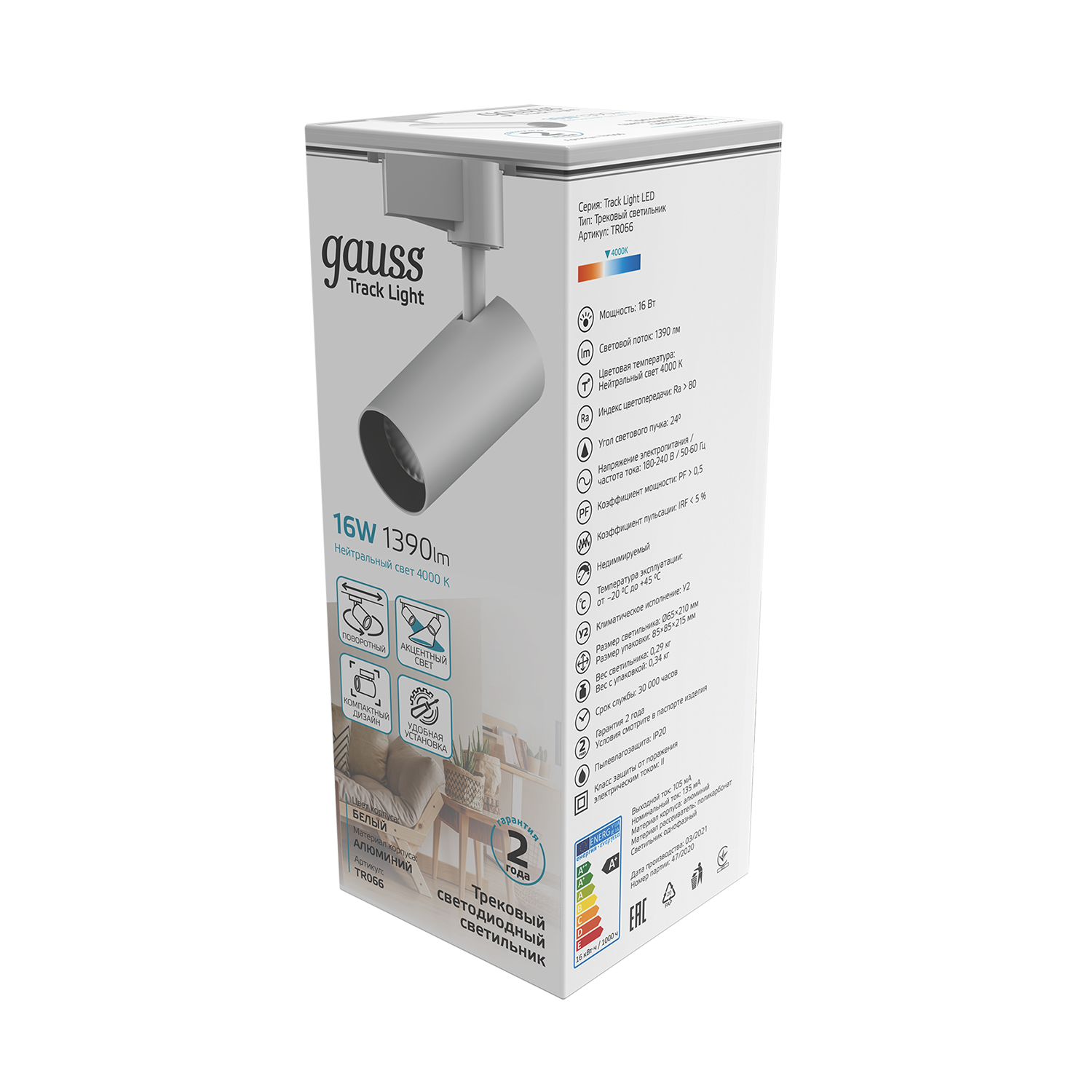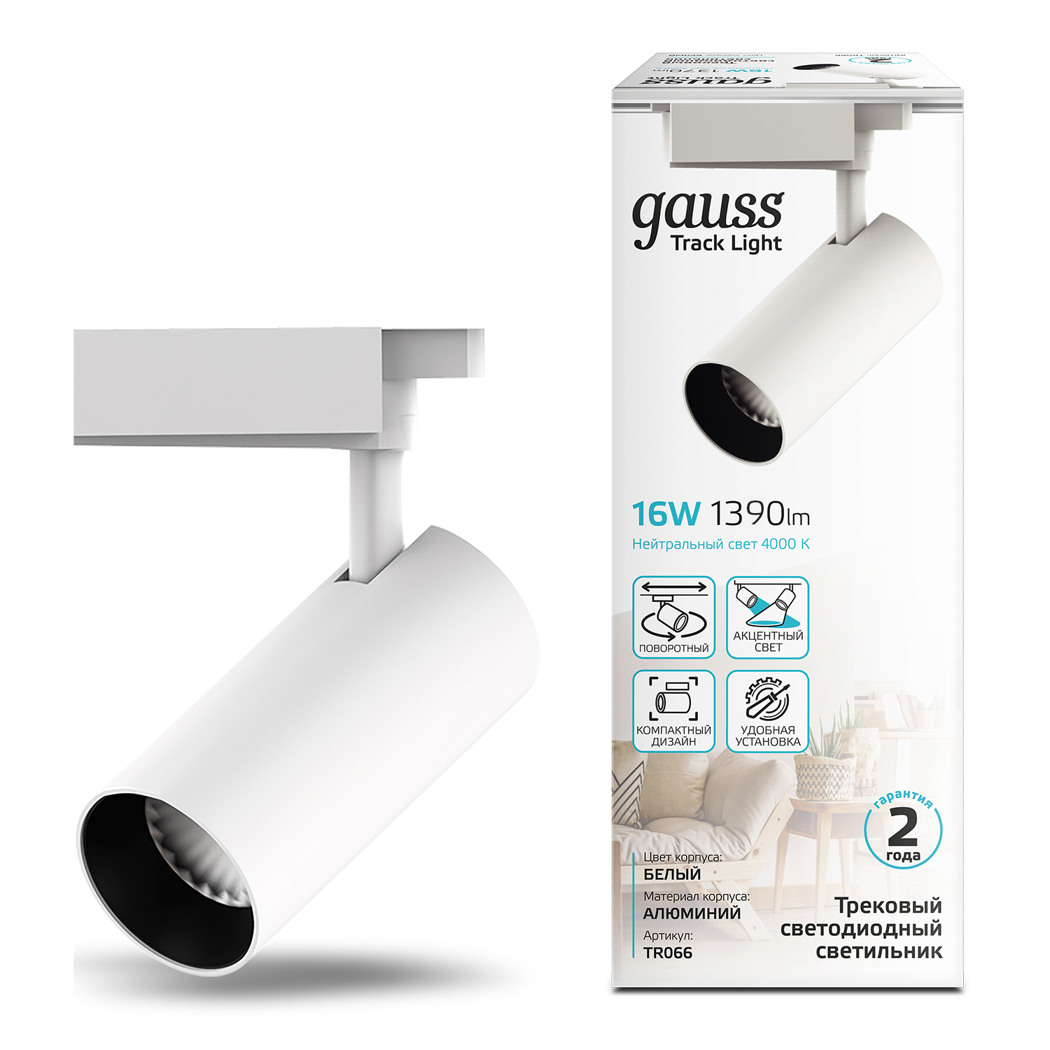 Светильник трековый Gauss цилиндр 16W TR066 имеет компактный дизайн, угол поворота 360° и оптимальный наклон в вертикальной плоскости. Это очень пластичный светильник для акцентного освещения отдельных зон жилых и нежилых помещений и для точного функционального освещения: журнальный и рабочий стол, гардероб, зеркала, интерьерные цветы и другие предметы интерьера, требующие дополнительного направленного света. Световой пучок 24°, яркость 1390лм, цветовая температура 4000К. Цвет корпуса белый, материал алюминий. Встраивается в трековые системы Gauss.