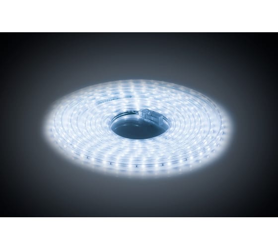 Она подойдет для декорирования ниш в стенах, многоуровневых потолков и даже мебели. По сравнению с лампами накаливания светодиодная лента эквивалентна лампам мощностью 30 Вт. Данная модель светодиодной ленты обладает холодным белым цветом свечения с цветовой температурой 6400 К. Также в состав комплекта входит шнур питания с коннектором для подключения к светодиодной ленте 220 В.