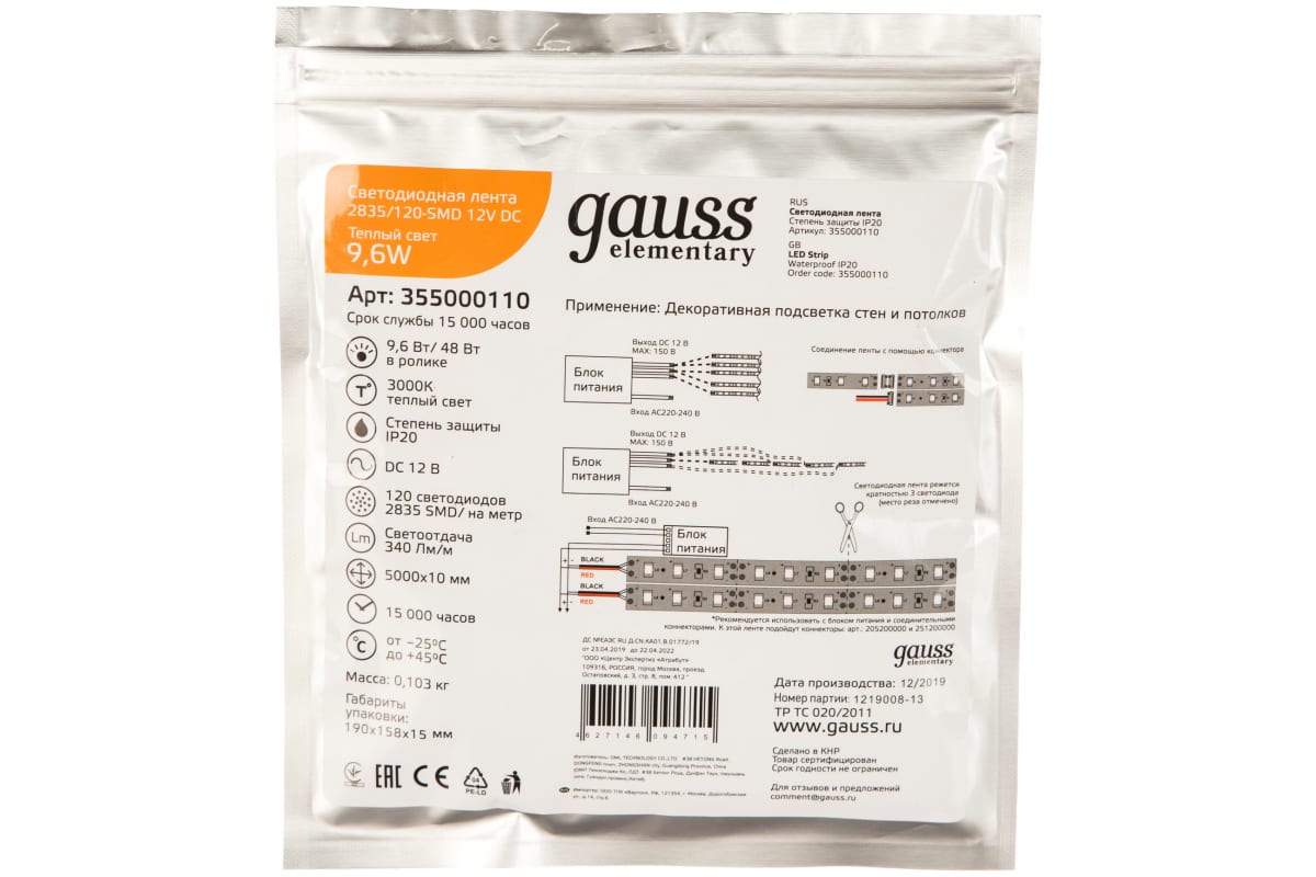 Потребляемая мощность на 1 метр: 9.6 Вт