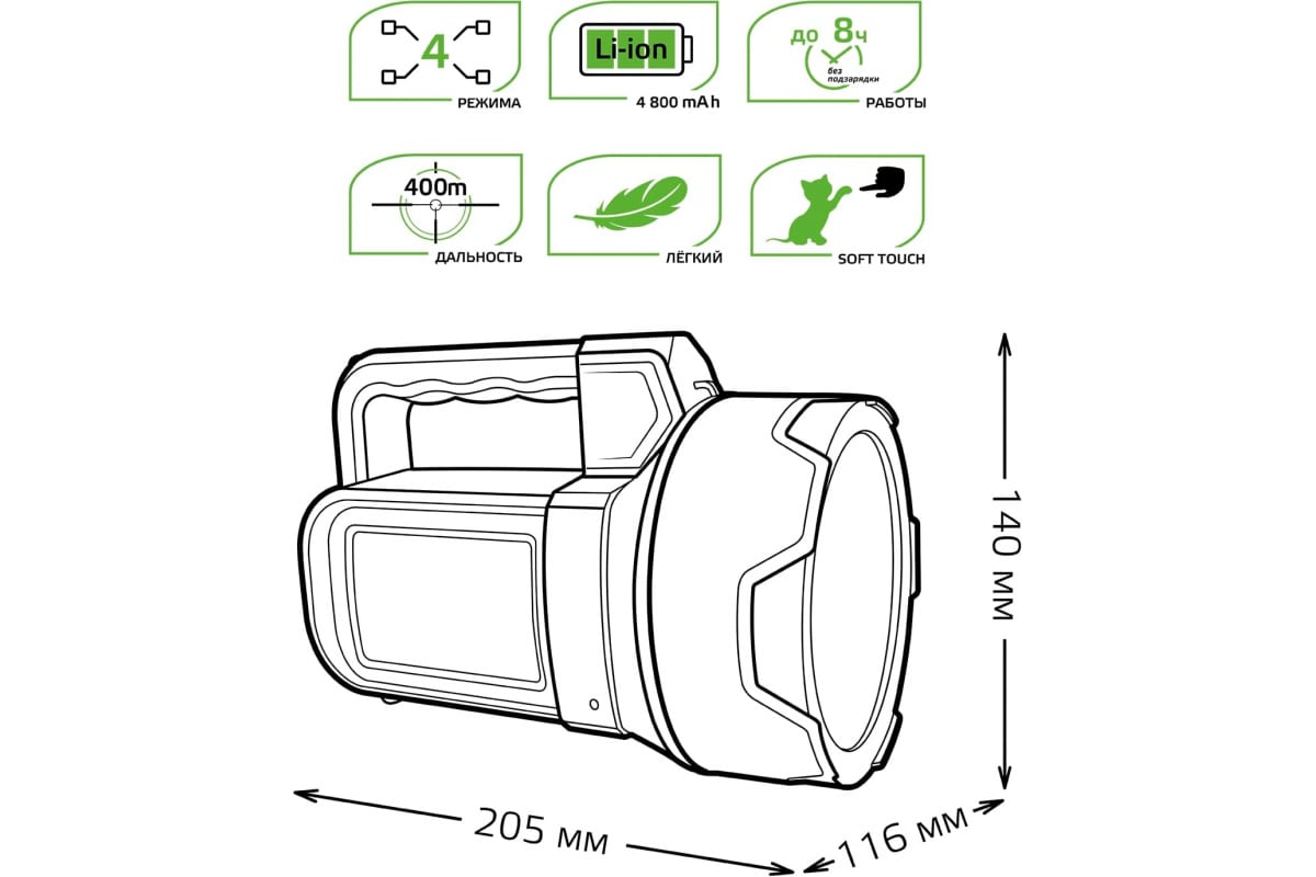 Прожекторный фонарь хорошо подойдет для использования на даче, для альпинизма, поисково-спасательных работ, а также для кемпинга или активного отдыха за городом. Фонарь оснащен Li-ion аккумулятором с большой емкостью, чтобы обеспечить непрерывную работу даже в самых критичных моментах.