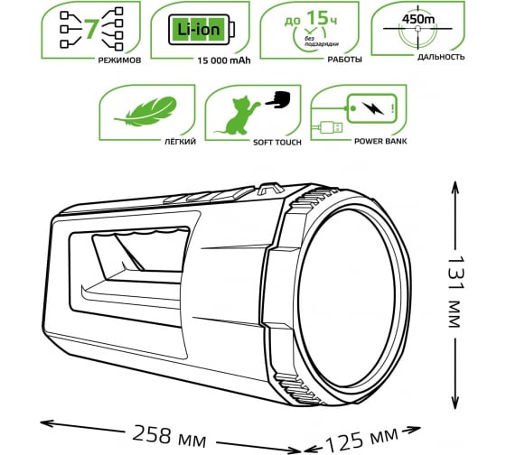 Прожекторный фонарь хорошо подойдет для использования на даче, для альпинизма, поисково-спасательных работ, а также для кемпинга или активного отдыха за городом. Фонарь оснащен Li-ion аккумулятором с большой емкостью, чтобы обеспечить непрерывную работу даже в самых критичных моментах.