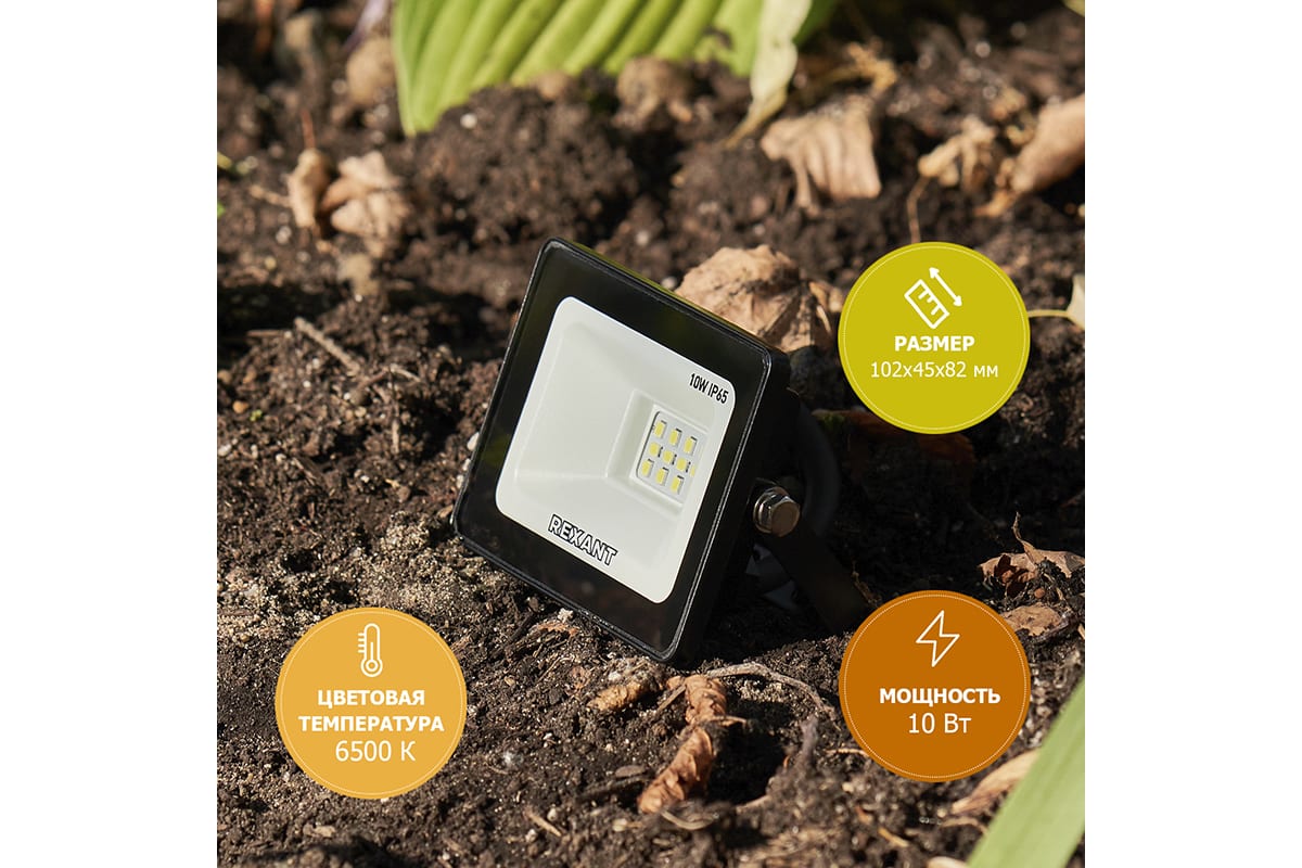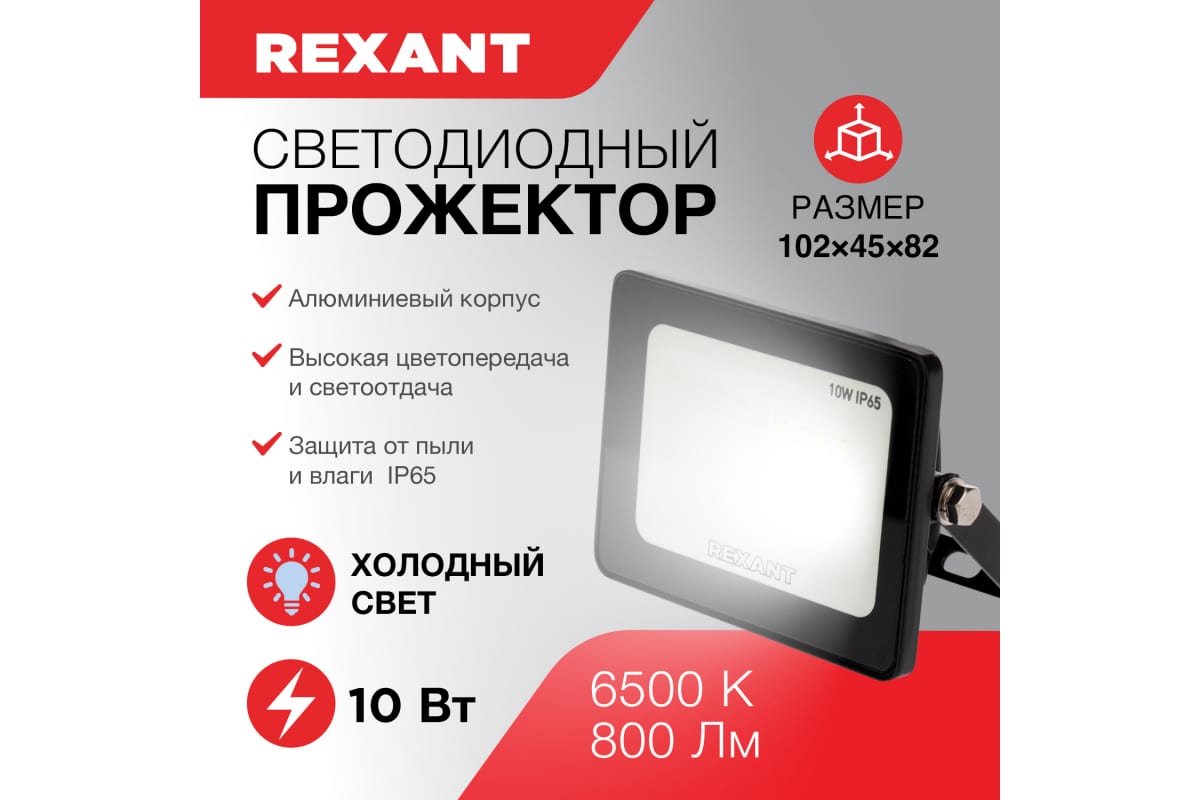 Технические характеристики REXANT 10 Вт 200–260В IP65 800 лм 6500 K холодный свет 605-001