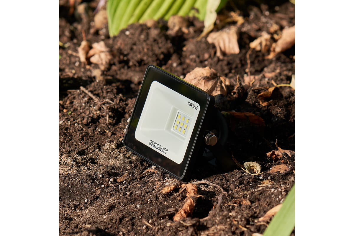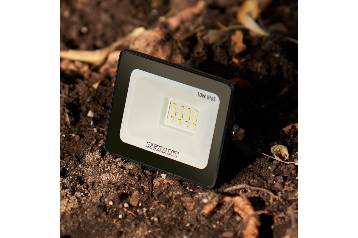Влагозащищенный светодиодный прожектор REXANT мощностью 10 Вт предназначен для наружного и внутреннего освещения. Благодаря высокому уровню герметичности (степень защиты IP65) прожектор может использоваться для наружного освещения фасадов зданий, рекламных объектов, детских и спортивных площадок, памятников и инсталляций, промышленных и складских помещений, внутренних дворов, придомовых территорий. Оборудован поворотной скобой, позволяющей легко регулировать угол освещения. Цветовая температура свечения прожектора составляет 6500К. Световой поток – 800 лм.