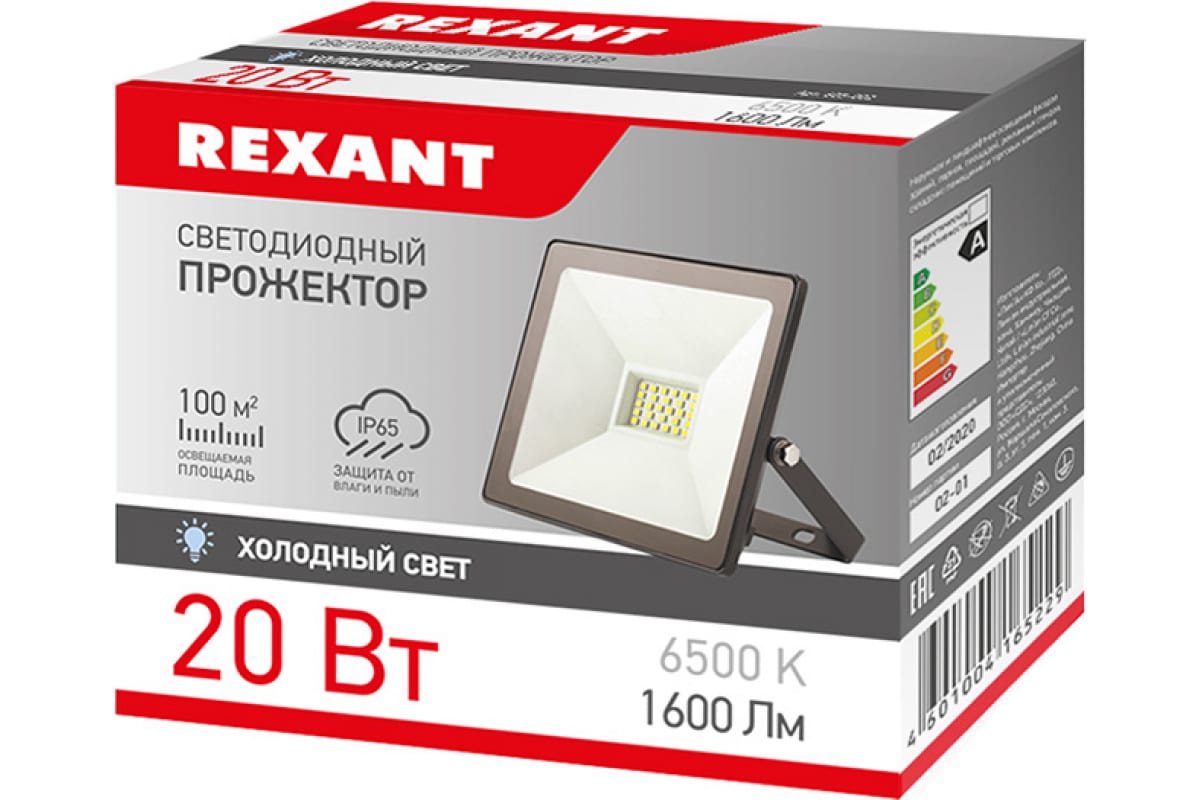 Технические характеристики REXANT 20 Вт 200–260В IP65 1600 лм 6500 K холодный свет 605-002