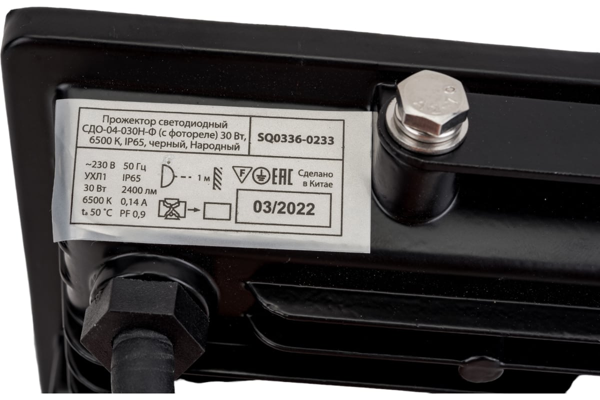 Светодиодный прожектор TDM СДО-04-030Н-Ф (с фотореле) 30 Вт, 6500 К, IP65 SQ0336-0233 применяется для освещения рекламных стендов и щитов; наружного освещения открытых площадей и пространств; освещения строительных площадок.