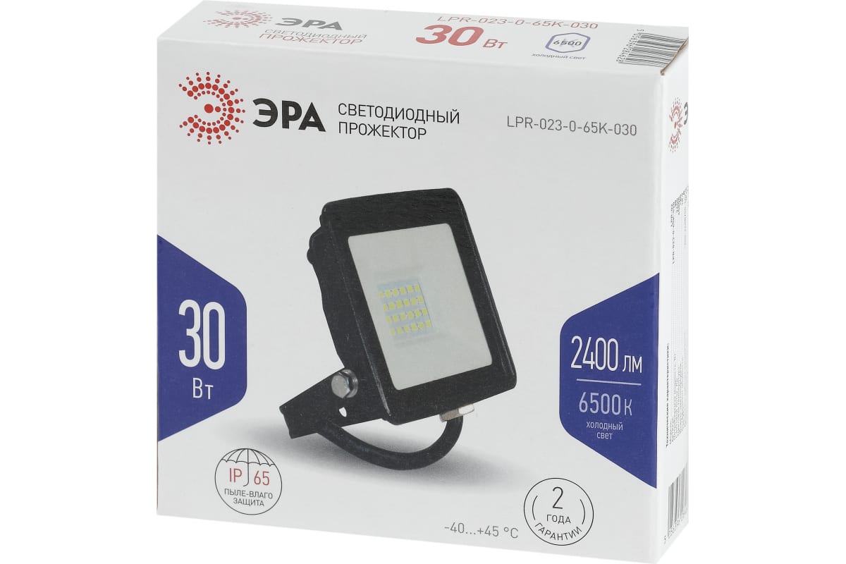 1.Светодиодный уличный прожектор ЭРА LPR-023-0-65K-030 30Вт 6500K 2400Лм 103х99х23,5 Б0052023 отличается простой и быстрой установкой: есть кронштейн специальной формы и регулировочные болты для выбора направления света