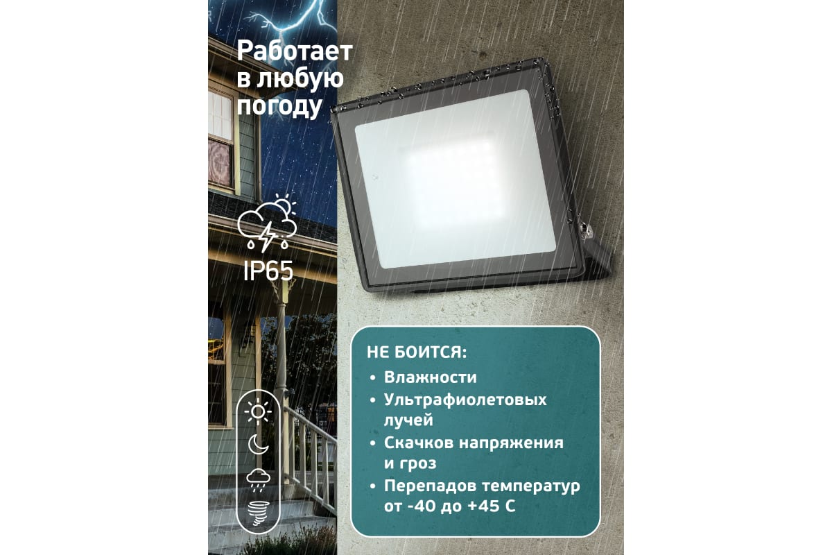 Светодиодный уличный прожектор ЭРА LPR-023-0-65K-050 50Вт 6500K 4000Лм 150х145х24 Б0052024 изготовлен из прочного алюминия, стекло закаленное. Экономичная LED-технология сократит до 90% затрат на электроэнергию. Прожектор устойчив к механическим воздействиям, защищен от дождя и пыли, работает при широком диапазоне температур (от -40 до +45).