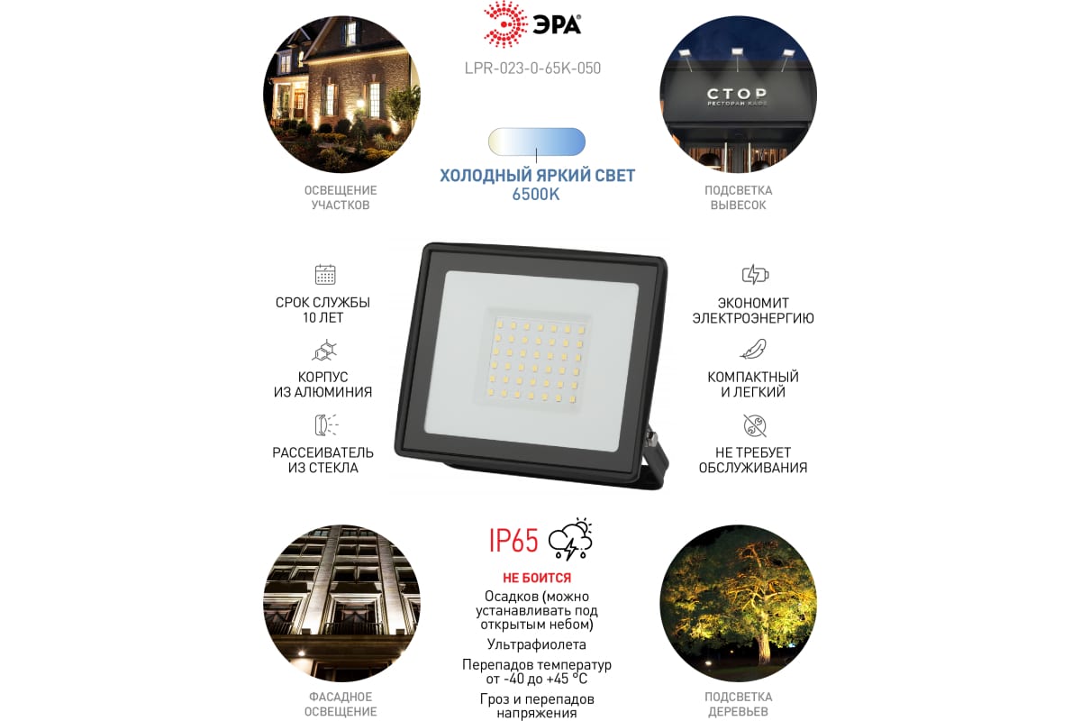 Преимущества ЭРА LPR-023-0-65K-050 50Вт 6500K 4000Лм 150х145х24 Б0052024