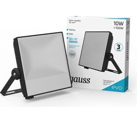 Светодиодный прожектор Gauss EVO 10W 900 lm IP65 6500К, IK04, черный 687511310 предназначен для освещения фасадов зданий, больших открытых пространств, промышленных объектов, частных загородных домов и спортивных площадок.