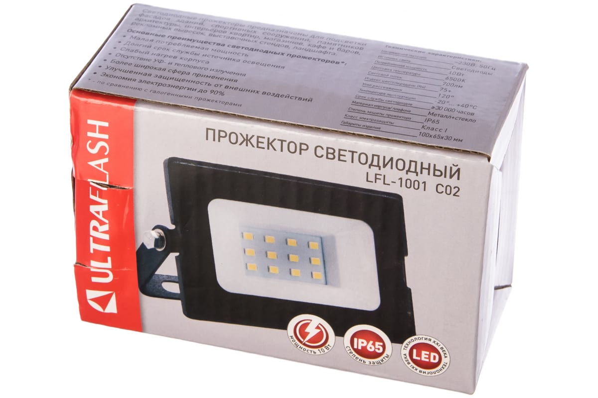 Преимущества Ultraflash LFL-1001 C02 черный LED SMD, 10 Вт, 230В, 6500К 12313