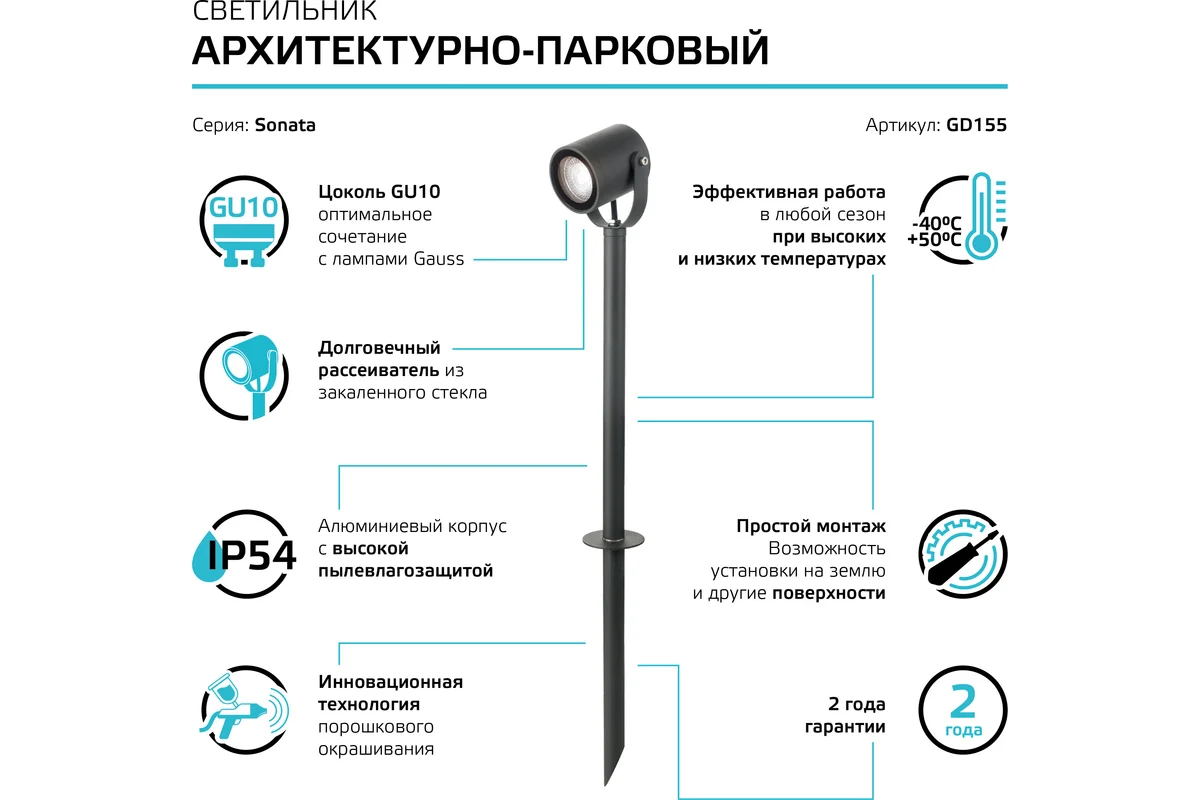 Технические характеристики Gauss Sonata 1xGU10, 170-240V / 50Hz GD155