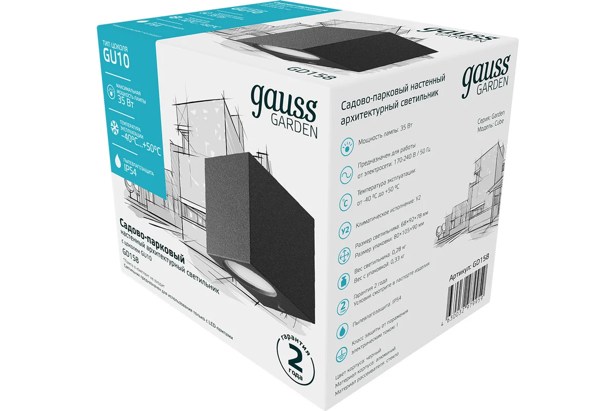 Технические характеристики Gauss 1xGU10, 67х92х80мм GD158